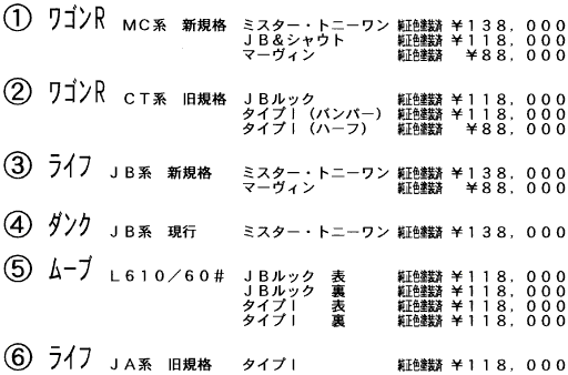 商 品 名 | 内 容 | 定 価 | 仮仕切 |